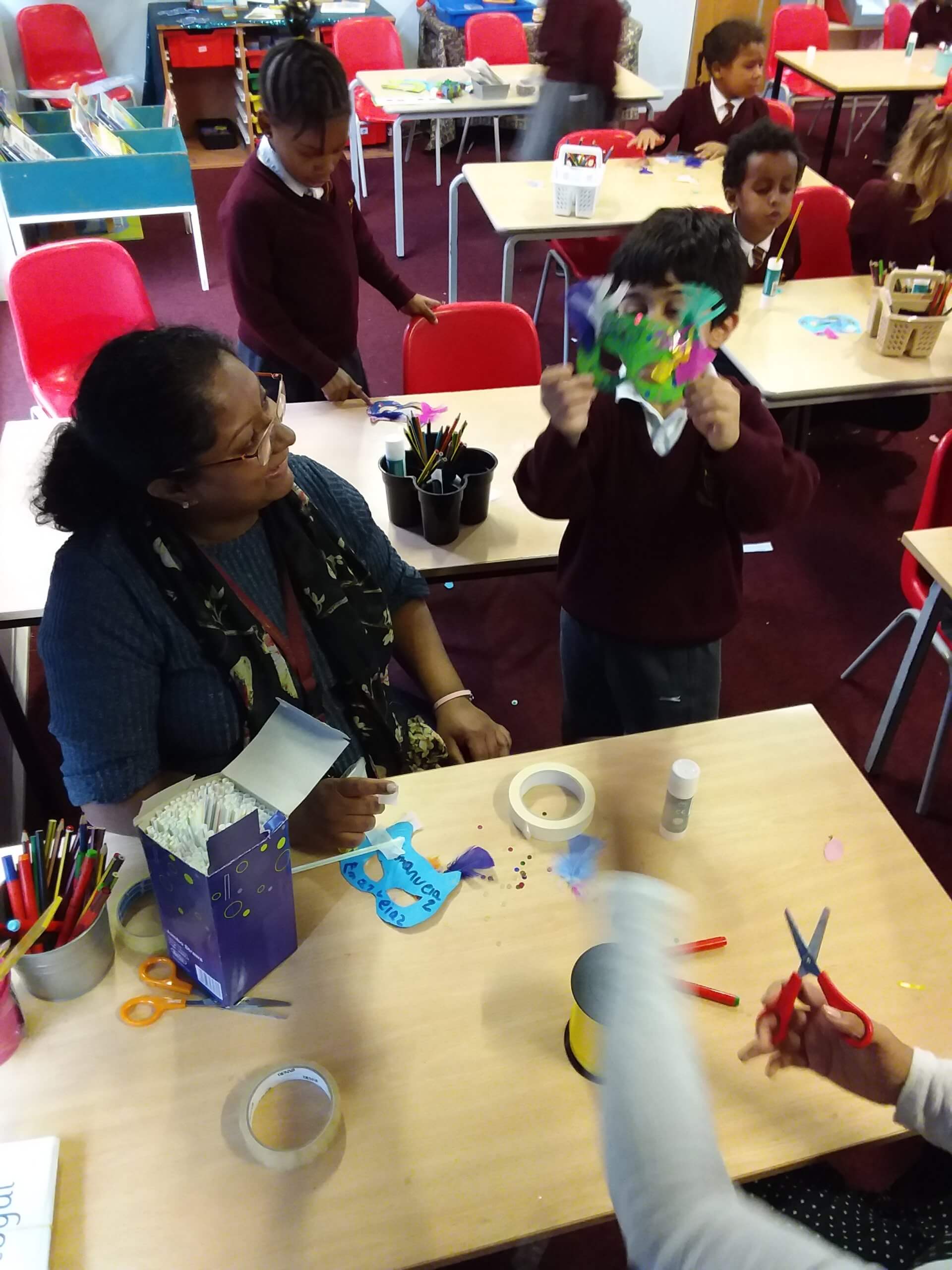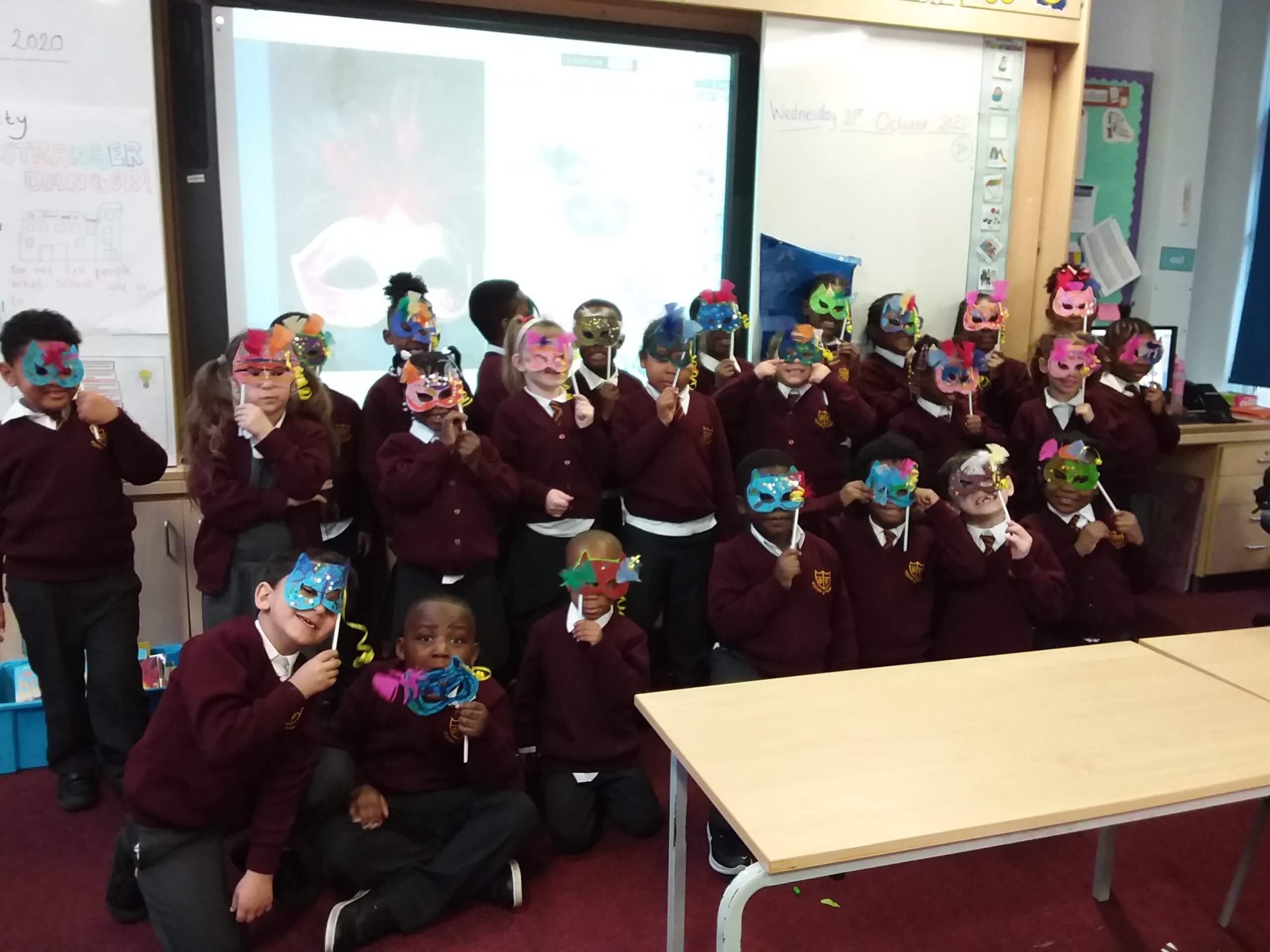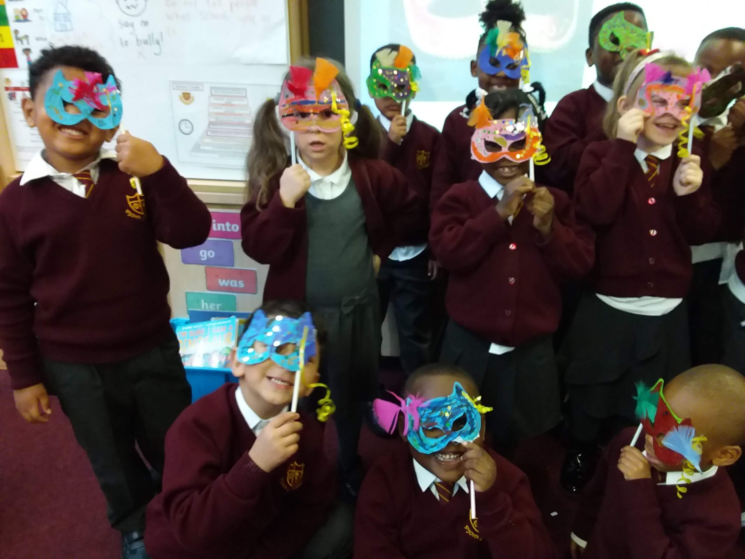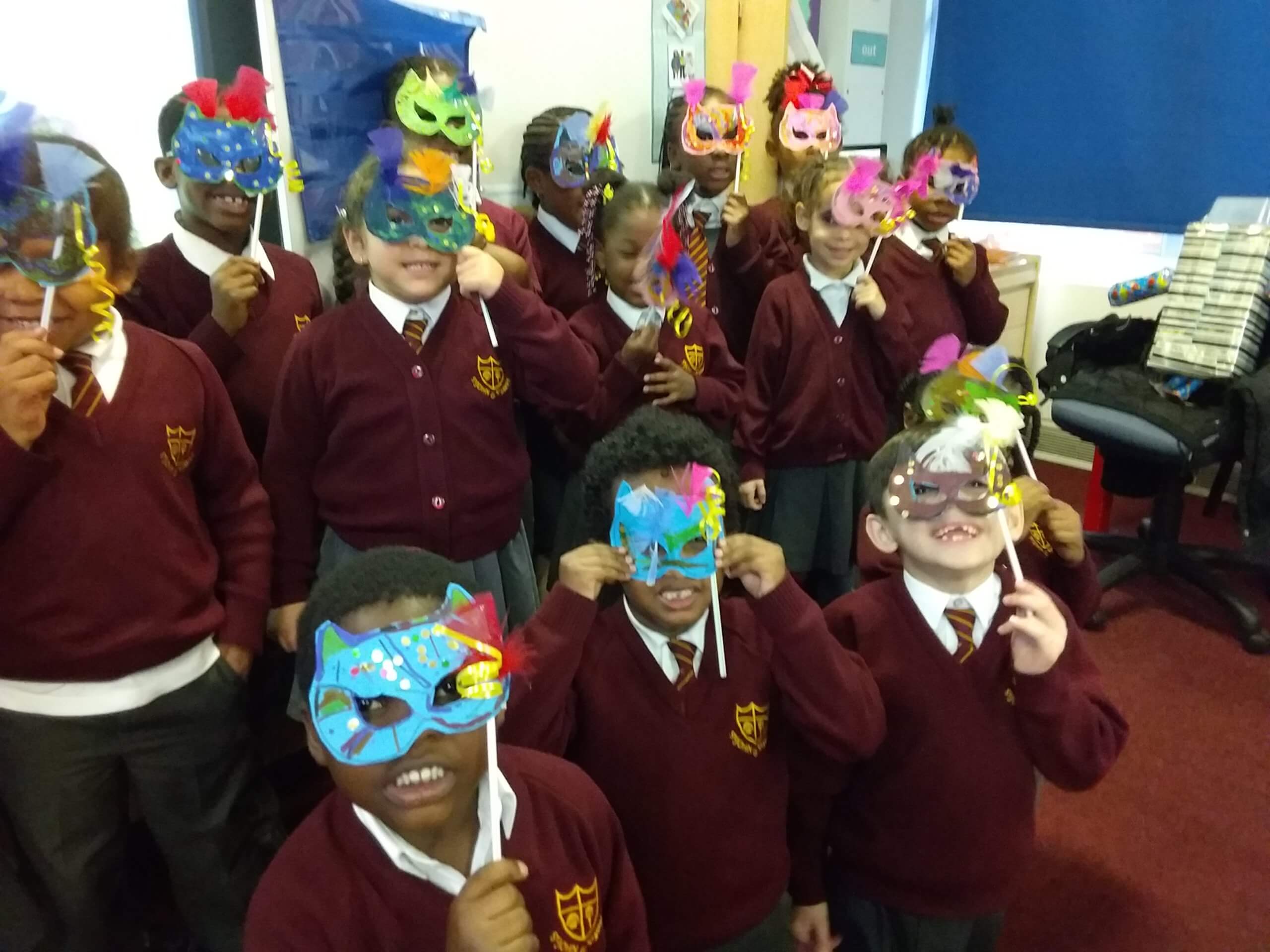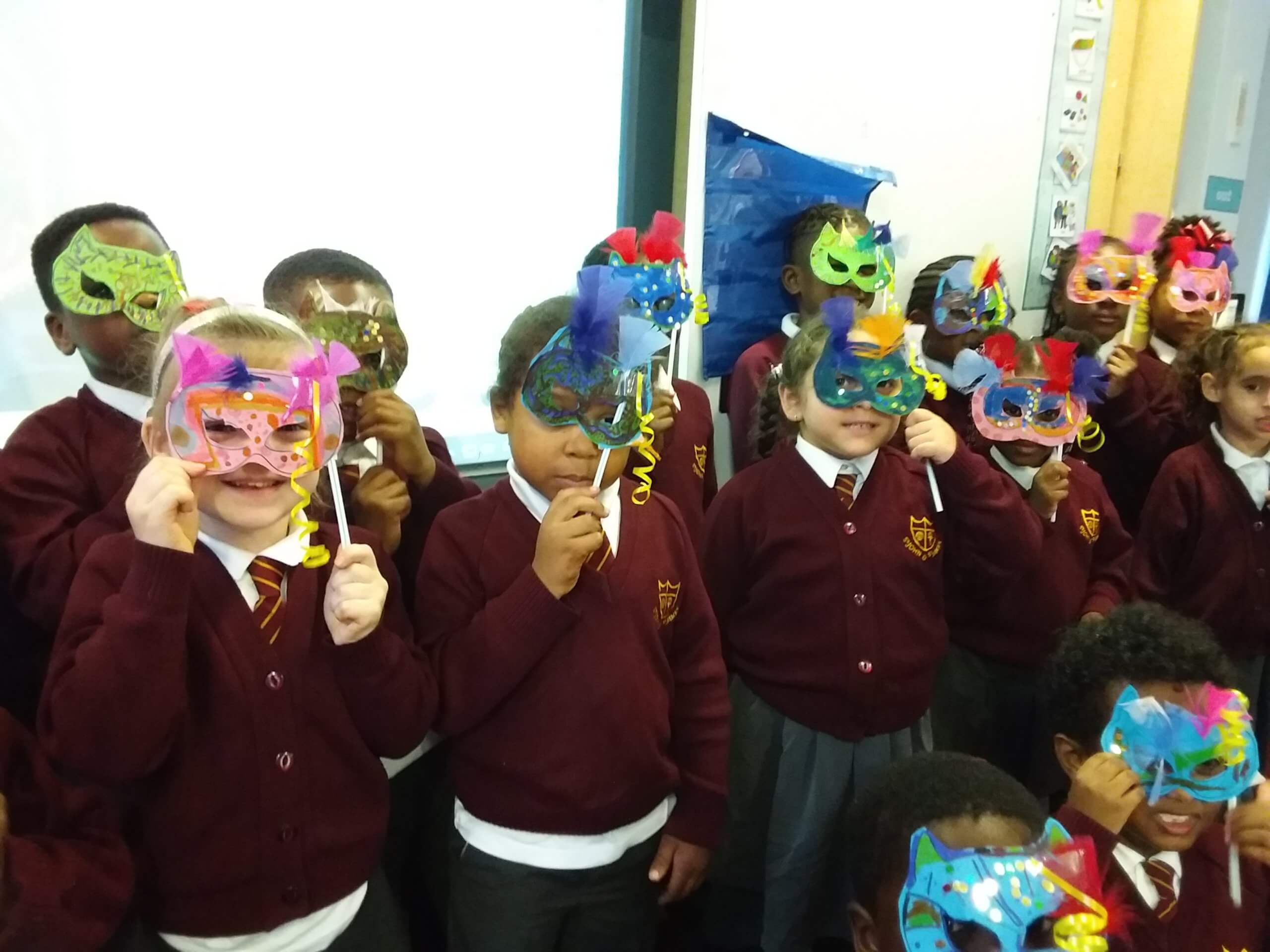 In our Art lessons we made Masquerade masks for us to celebrate Black History Month.